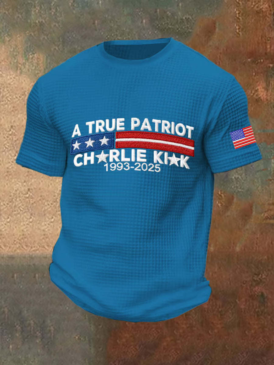 Men's Commemorative Leader A TRUE PATRIOT  Waffle Short Sleeve T-Shirt