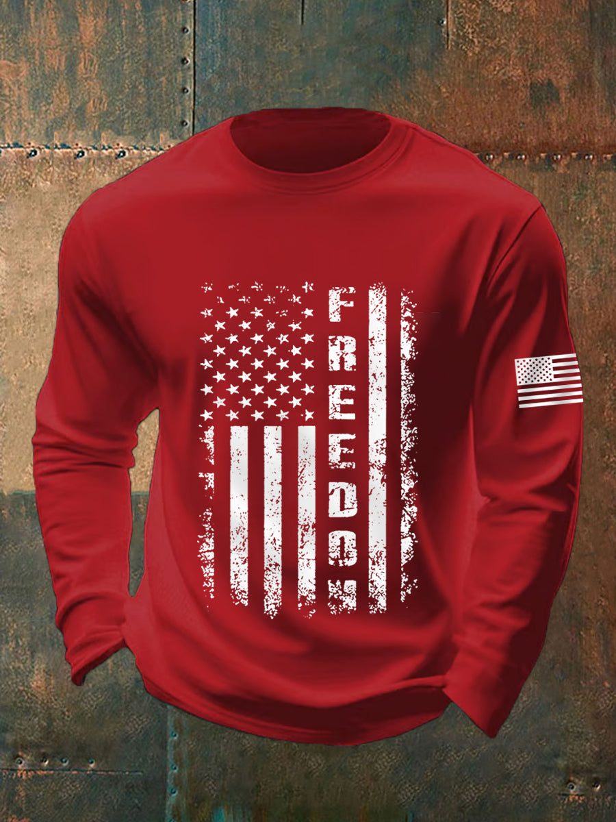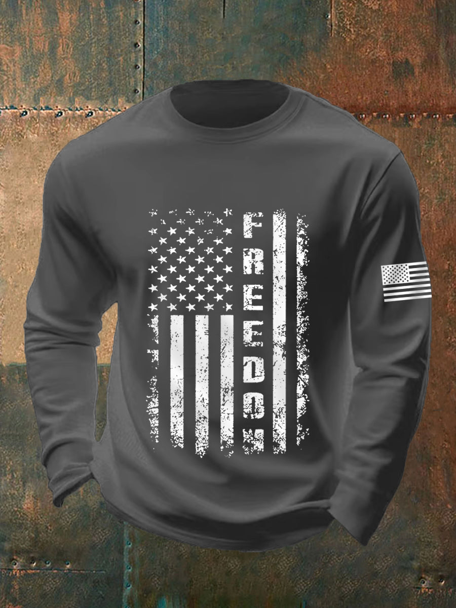 Men's Freedom USA Flag Print Long-Sleeve T-Shirt